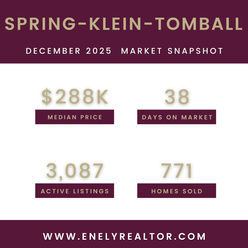 December 2025 real estate market update for Spring, Klein, and Tomball, TX. Learn what current home prices, sales, and inventory mean for buyers and sellers from local expert Enely Ferrer.